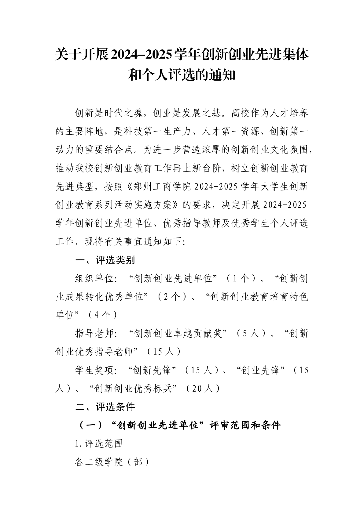 关于开展2024-2025学年创新创业先进集体和个人评选的通知
